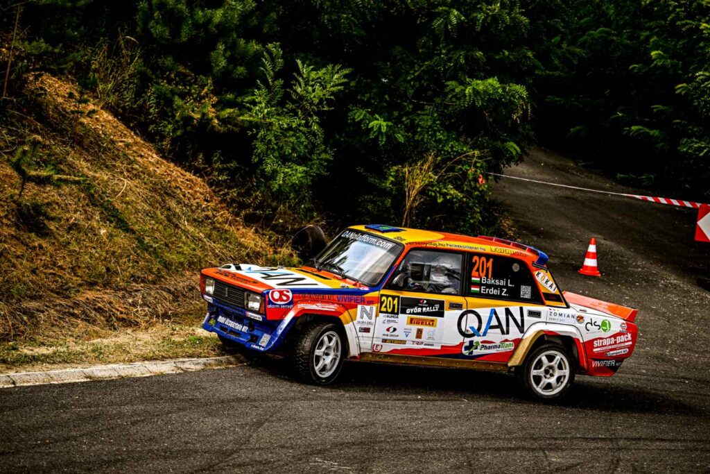 Eseménydús futamon van túl a másodosztály Győrben. Az első gyorsasági végén Baksai László állt az élre, majd Várnai Dávid vette át a vezetést, de ő is csak egy szakaszra, mert a harmadik gyorsaságin kiesett. Rónavölgyi Endre és Percze Nándor került az első helyre és a hondás duó folyamatosan növelte előnyét, de a hetedik szakaszon már nem tudtak elrajtolni egy futóműalkatrész törése miatt. Az első helyre ismét Baksaiék kerültek, 24 másodperc előnnyel Faltuszék előtt. A Rábaringen el is olvadt az előny, a fiatal győri pilóta megnyerte a szombati zárószakaszt és 28 másodperccel gyorsabb volt Baksainál, amivel 4 másodperccel átvette a vezetést.